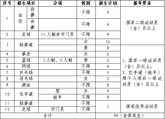 备注:被我校录取的考生,入校后学习的运动项目需在学校开设的项目中选择。